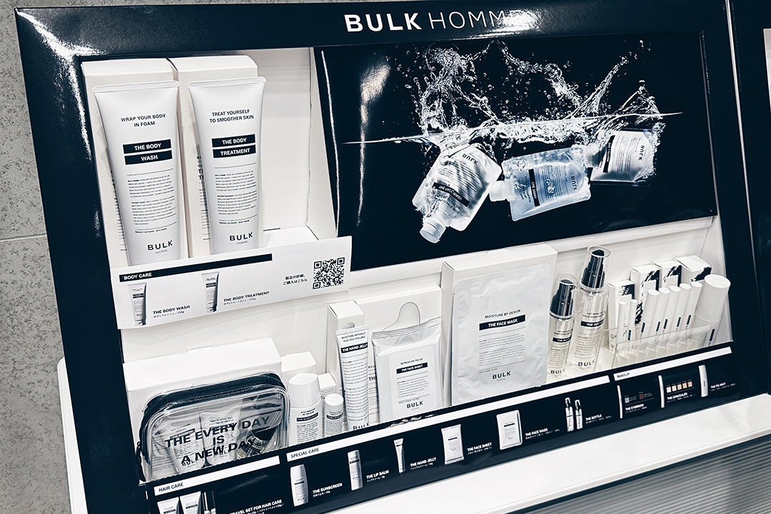 これまで発売されているバルクオムのラインナップもディスプレイされており、試せるようになっていました。