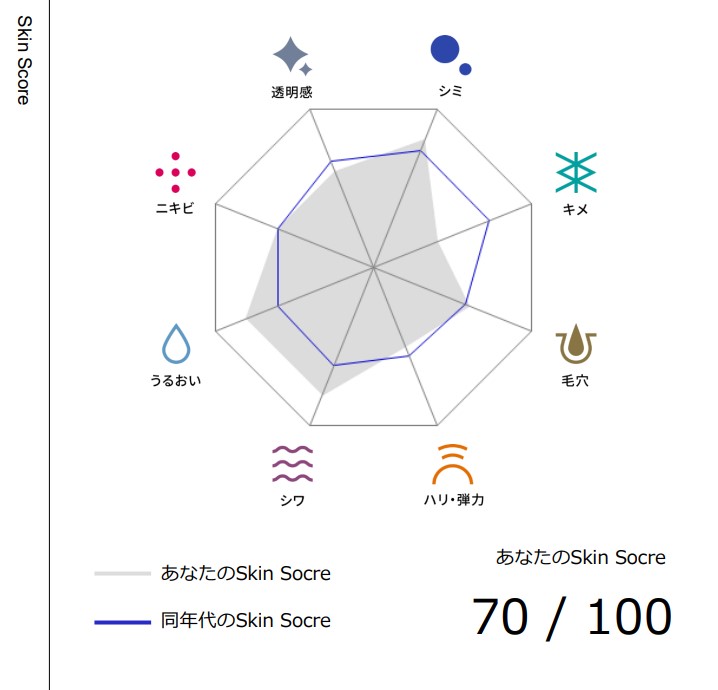 肌コンディションを解析図とメモリで表現してくれるのでわかりやすい