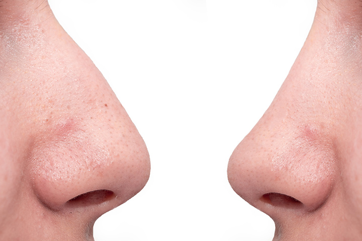 脂っぽい肌質の人に多く見られ、特に鼻や頬の毛穴が目立ちやすくなります。