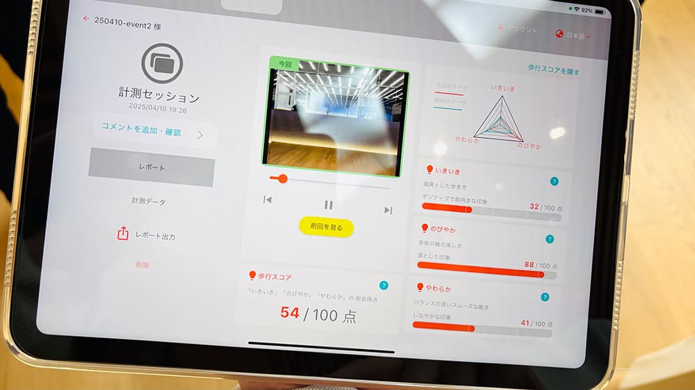 今回の体験の目玉は、何と言っても歩容(歩き姿)解析。正直に言えば、体験前は「歩き方を診断するって、そんなに違いが出るものなのだろうか?」と半信半疑でした。