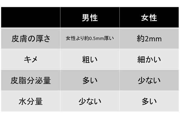 - 男性の肌と女性の肌と違い