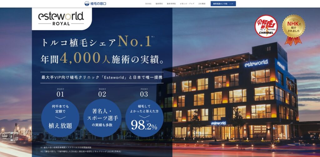 植毛の窓口では、最大手VIP向け植毛クリニック「Esteworld」と提携しており、最先端の植毛治療を受けることができます。